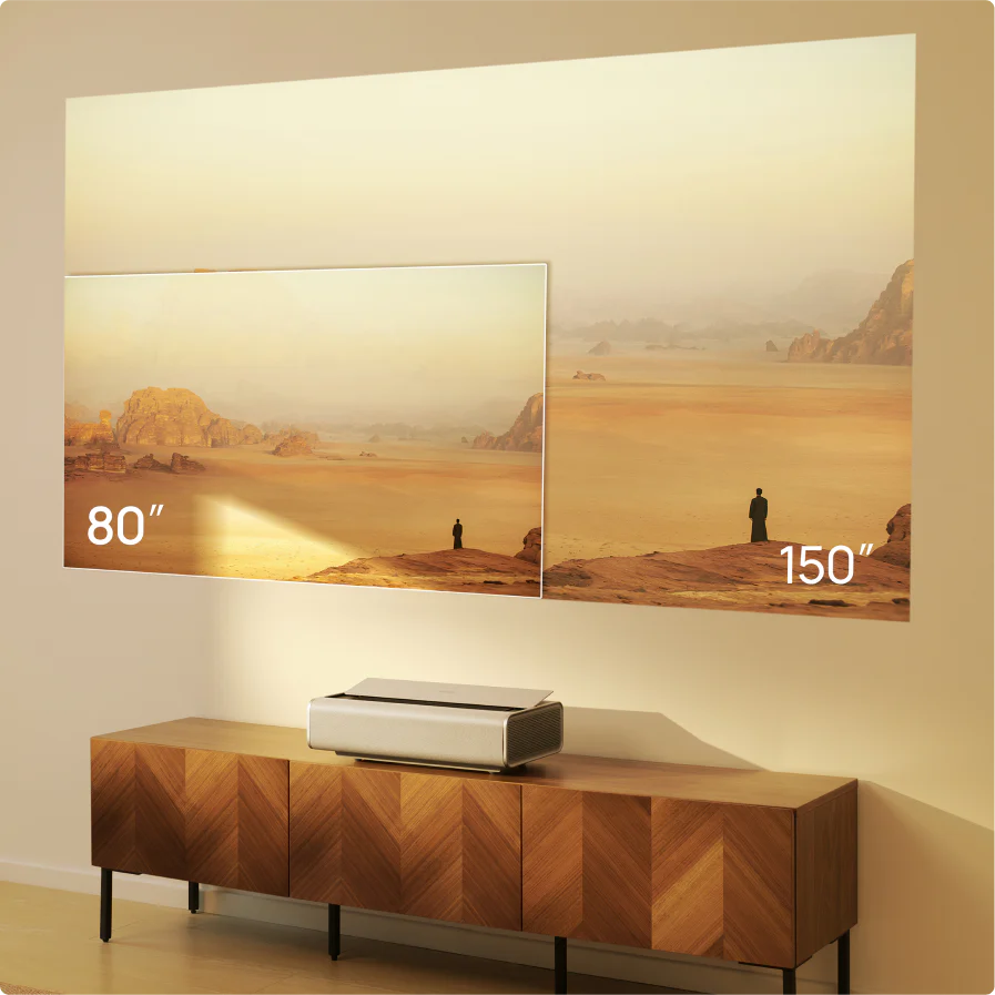 Effortlessly switch screen sizes from 80'' to 150'', unveiling a breathtaking cinematic experience that enthralls the senses.